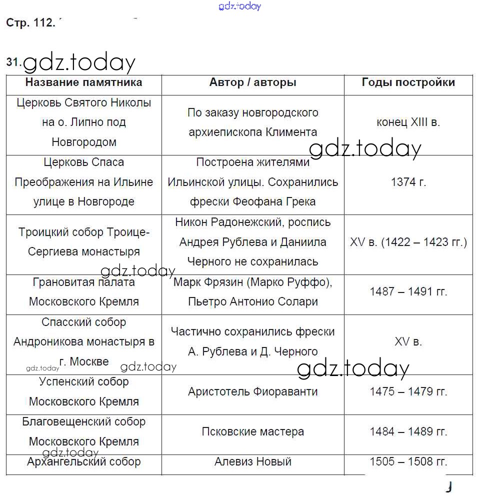 На страницах сайта gdz.today вы найдете учебный и вспомогательный материал, направленный на улучшения знаний школьной программы. ГДЗ - онлайн мир знаний Решение. Раздел 5. Русские земли в середине XIII-XV веке стр. 112 Рабочей тетради по Истории России для 6 класса Кочегаров Русское слово Инновационная школа 2017