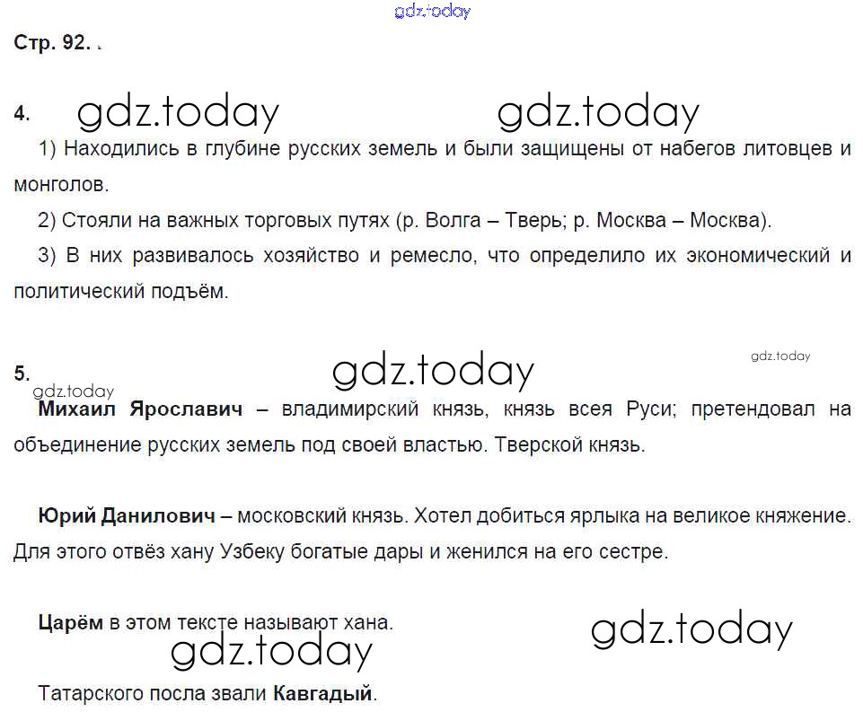 На страницах сайта gdz.today вы найдете учебный и вспомогательный материал, направленный на улучшения знаний школьной программы. ГДЗ - онлайн мир знаний Решение. Раздел 5. Русские земли в середине XIII-XV веке стр. 92 Рабочей тетради по Истории России для 6 класса Кочегаров Русское слово Инновационная школа 2017