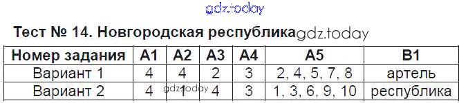 Ответы к Решение к тестам Тест №14. Новгородская республика Контрольно-измерительным материалам (КИМ) по Истории России для 6 класса Волкова ВАКО 2017