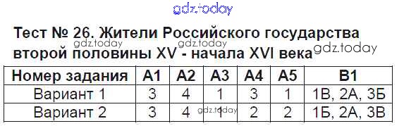 На страницах сайта gdz.today вы найдете учебный и вспомогательный материал, направленный на улучшения знаний школьной программы. ГДЗ - онлайн мир знаний Решение к тестам Тест №26. Жители Российского государства второй половины XV - начала XVI века Контрольно-измерительным материалам (КИМ) по Истории России для 6 класса Волкова ВАКО 2017