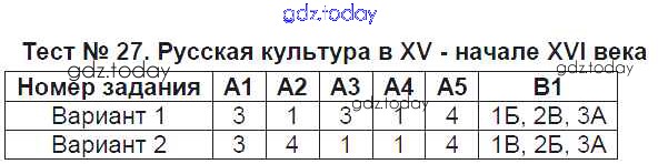 На страницах сайта gdz.today вы найдете учебный и вспомогательный материал, направленный на улучшения знаний школьной программы. ГДЗ - онлайн мир знаний Решение к тестам Тест №27. Русская культура в XV - начале XVI века Контрольно-измерительным материалам (КИМ) по Истории России для 6 класса Волкова ВАКО 2017