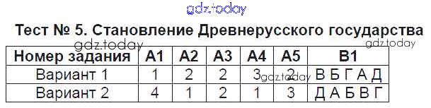Ответы к Решение к тестам Тест №5. Становление Древнерусского государства Контрольно-измерительным материалам (КИМ) по Истории России для 6 класса Волкова ВАКО 2017