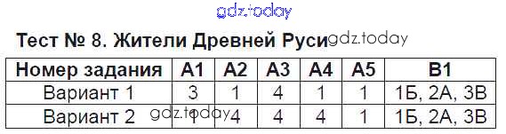 На страницах сайта gdz.today вы найдете учебный и вспомогательный материал, направленный на улучшения знаний школьной программы. ГДЗ - онлайн мир знаний Решение к тестам Тест №8. Жители Древней Руси Контрольно-измерительным материалам (КИМ) по Истории России для 6 класса Волкова ВАКО 2017