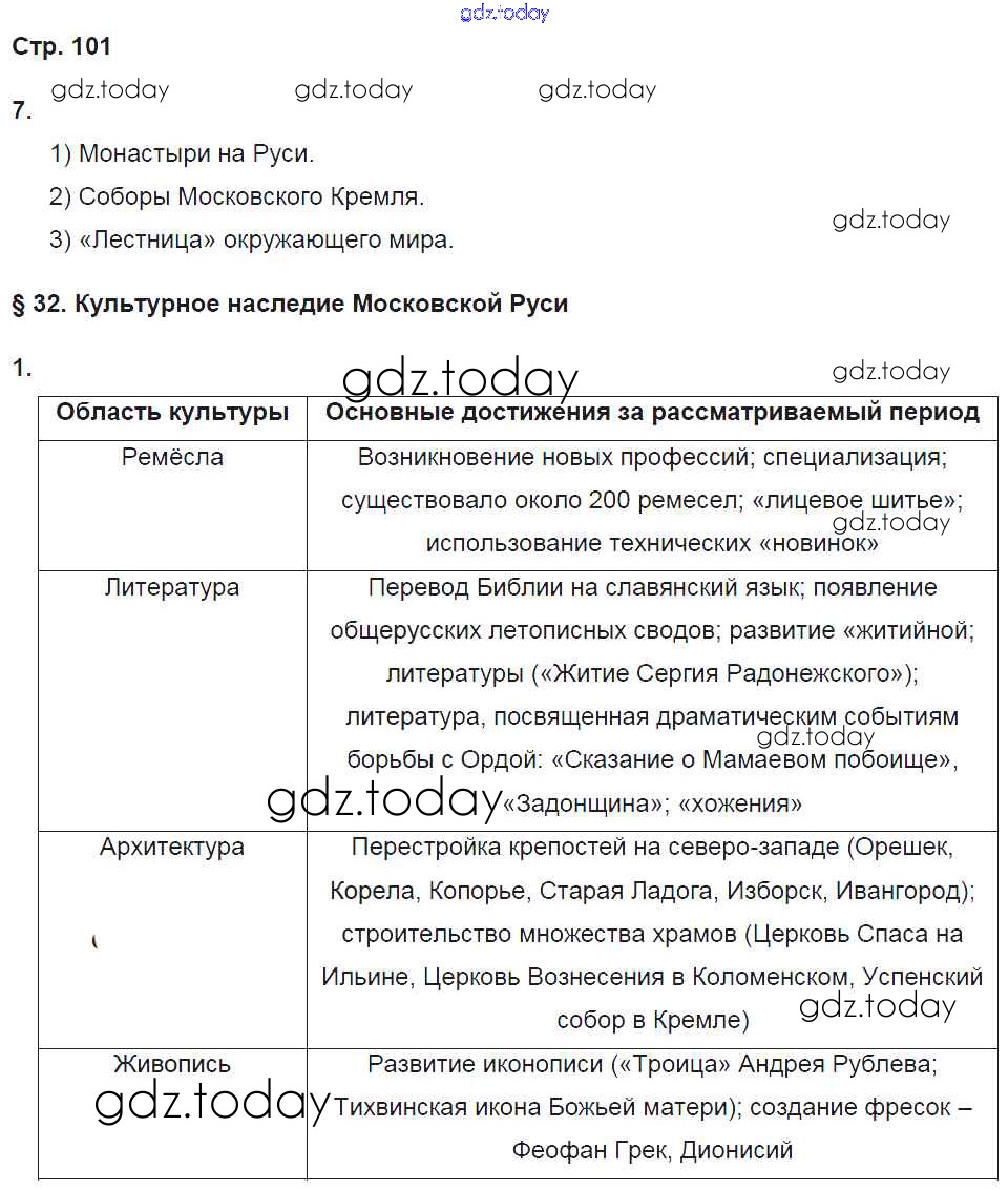 На страницах сайта gdz.today вы найдете учебный и вспомогательный материал, направленный на улучшения знаний школьной программы. ГДЗ - онлайн мир знаний Страницы (решение) 101 Рабочей тетради по Истории России для 6 класса Баранов Вентана-граф Алгоритм успеха 2017