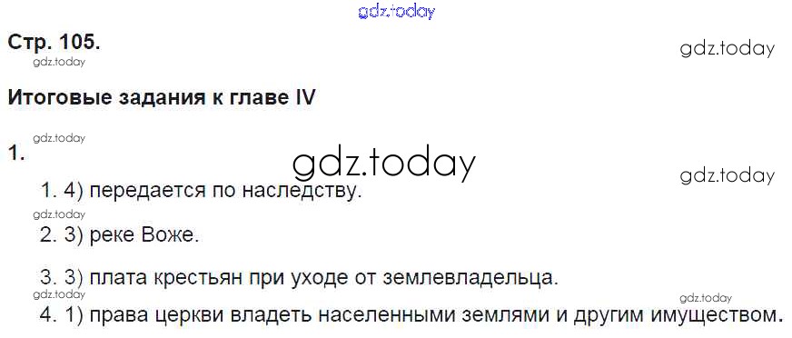 На страницах сайта gdz.today вы найдете учебный и вспомогательный материал, направленный на улучшения знаний школьной программы. ГДЗ - онлайн мир знаний Страницы (решение) 105 Рабочей тетради по Истории России для 6 класса Баранов Вентана-граф Алгоритм успеха 2017