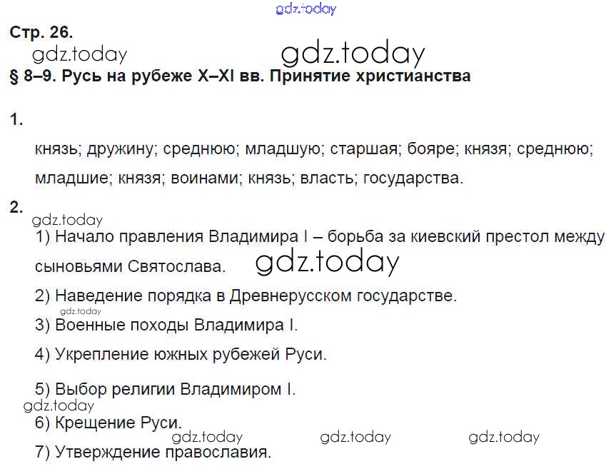 На страницах сайта gdz.today вы найдете учебный и вспомогательный материал, направленный на улучшения знаний школьной программы. ГДЗ - онлайн мир знаний Страницы (решение) 26 Рабочей тетради по Истории России для 6 класса Баранов Вентана-граф Алгоритм успеха 2017