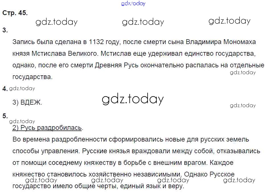 На страницах сайта gdz.today вы найдете учебный и вспомогательный материал, направленный на улучшения знаний школьной программы. ГДЗ - онлайн мир знаний Страницы (решение) 45 Рабочей тетради по Истории России для 6 класса Баранов Вентана-граф Алгоритм успеха 2017