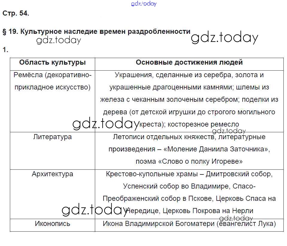 На страницах сайта gdz.today вы найдете учебный и вспомогательный материал, направленный на улучшения знаний школьной программы. ГДЗ - онлайн мир знаний Страницы (решение) 54 Рабочей тетради по Истории России для 6 класса Баранов Вентана-граф Алгоритм успеха 2017