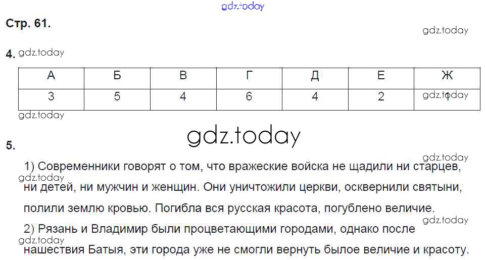 На страницах сайта gdz.today вы найдете учебный и вспомогательный материал, направленный на улучшения знаний школьной программы. ГДЗ - онлайн мир знаний Страницы (решение) 61 Рабочей тетради по Истории России для 6 класса Баранов Вентана-граф Алгоритм успеха 2017