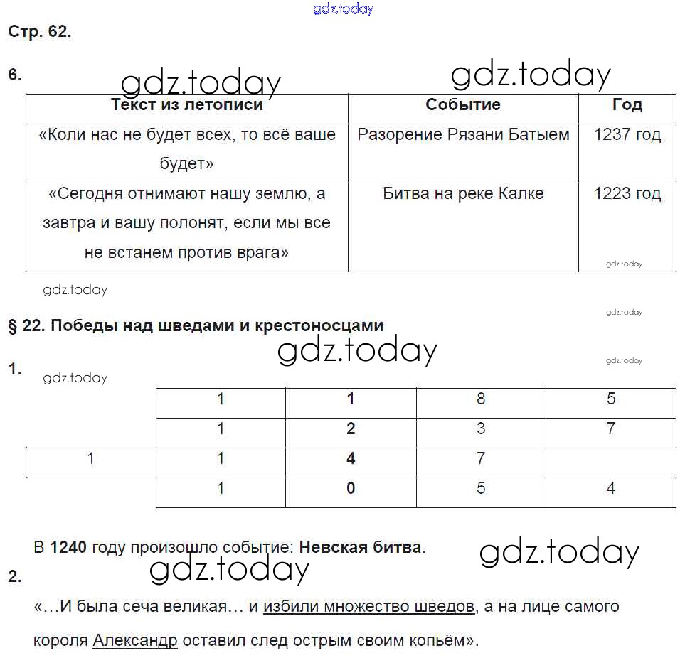 На страницах сайта gdz.today вы найдете учебный и вспомогательный материал, направленный на улучшения знаний школьной программы. ГДЗ - онлайн мир знаний Страницы (решение) 62 Рабочей тетради по Истории России для 6 класса Баранов Вентана-граф Алгоритм успеха 2017