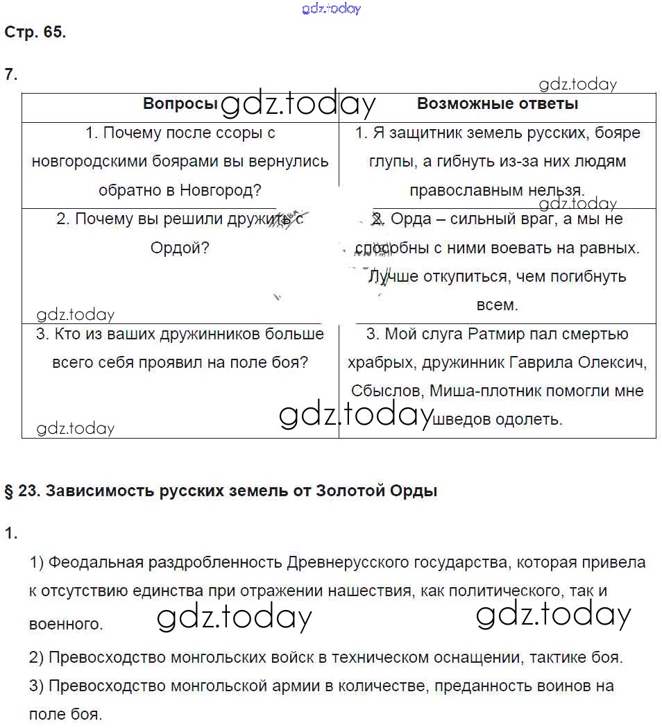 На страницах сайта gdz.today вы найдете учебный и вспомогательный материал, направленный на улучшения знаний школьной программы. ГДЗ - онлайн мир знаний Страницы (решение) 65 Рабочей тетради по Истории России для 6 класса Баранов Вентана-граф Алгоритм успеха 2017