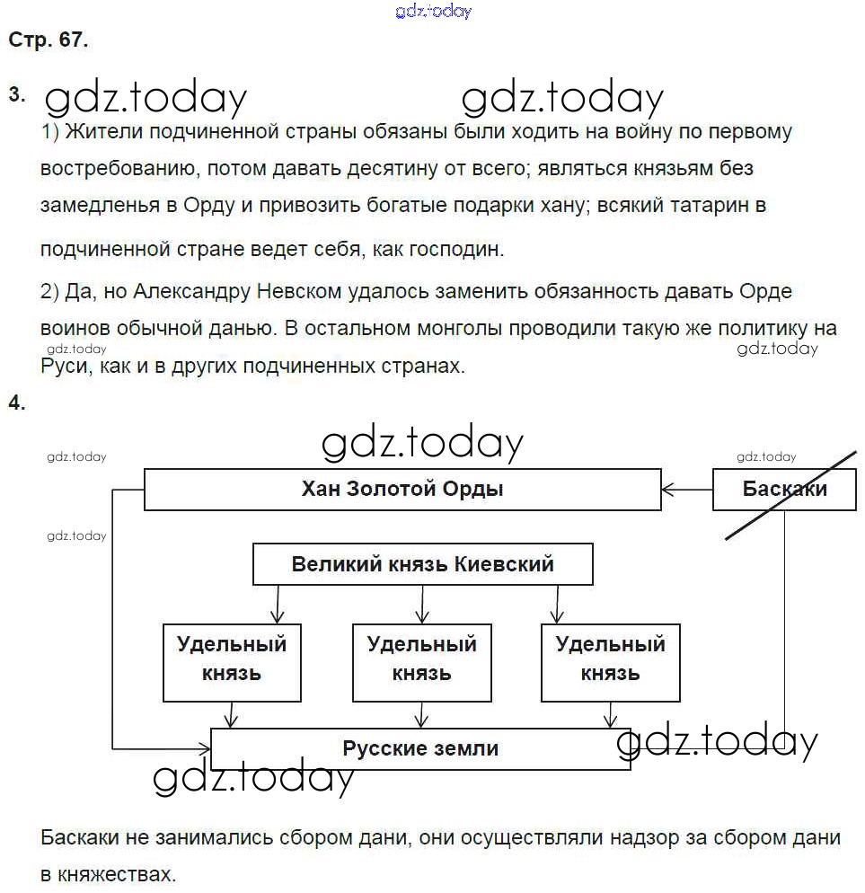 На страницах сайта gdz.today вы найдете учебный и вспомогательный материал, направленный на улучшения знаний школьной программы. ГДЗ - онлайн мир знаний Страницы (решение) 67 Рабочей тетради по Истории России для 6 класса Баранов Вентана-граф Алгоритм успеха 2017