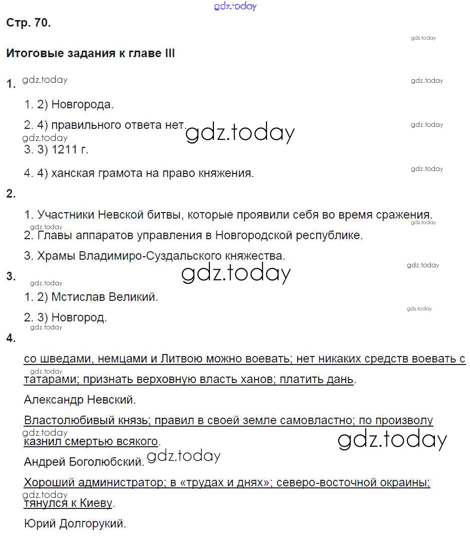 На страницах сайта gdz.today вы найдете учебный и вспомогательный материал, направленный на улучшения знаний школьной программы. ГДЗ - онлайн мир знаний Страницы (решение) 70 Рабочей тетради по Истории России для 6 класса Баранов Вентана-граф Алгоритм успеха 2017