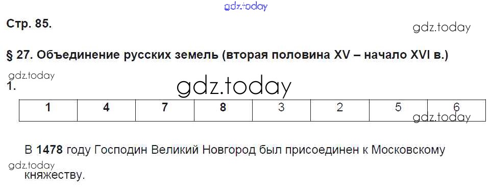 На страницах сайта gdz.today вы найдете учебный и вспомогательный материал, направленный на улучшения знаний школьной программы. ГДЗ - онлайн мир знаний Страницы (решение) 85 Рабочей тетради по Истории России для 6 класса Баранов Вентана-граф Алгоритм успеха 2017