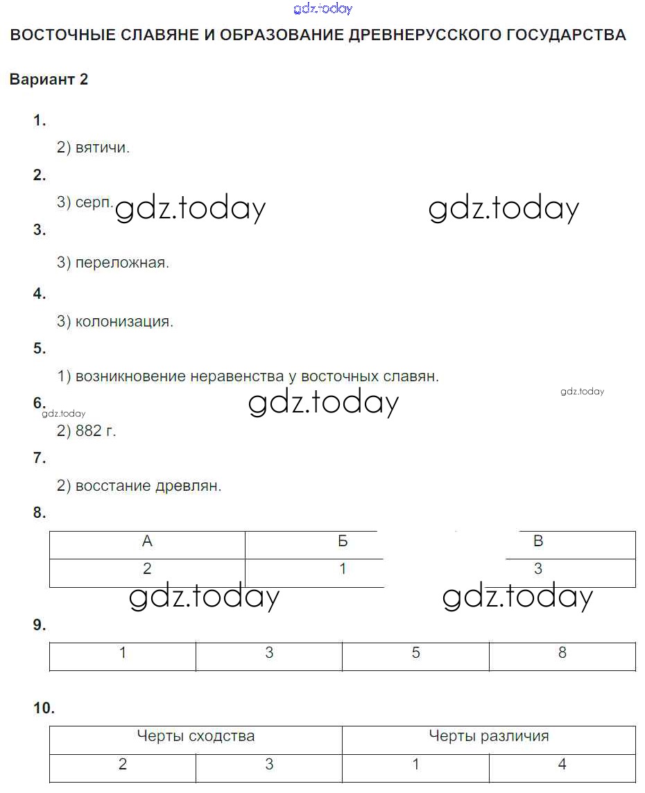 Ответы к СР-№1. Восточные славяне и образование Древнерусского государства Русь Древняя (решение) Вариант-2 Тематическому контролю по Истории России для 6 класса Артасов, Гаврилина Национальное образование 2015