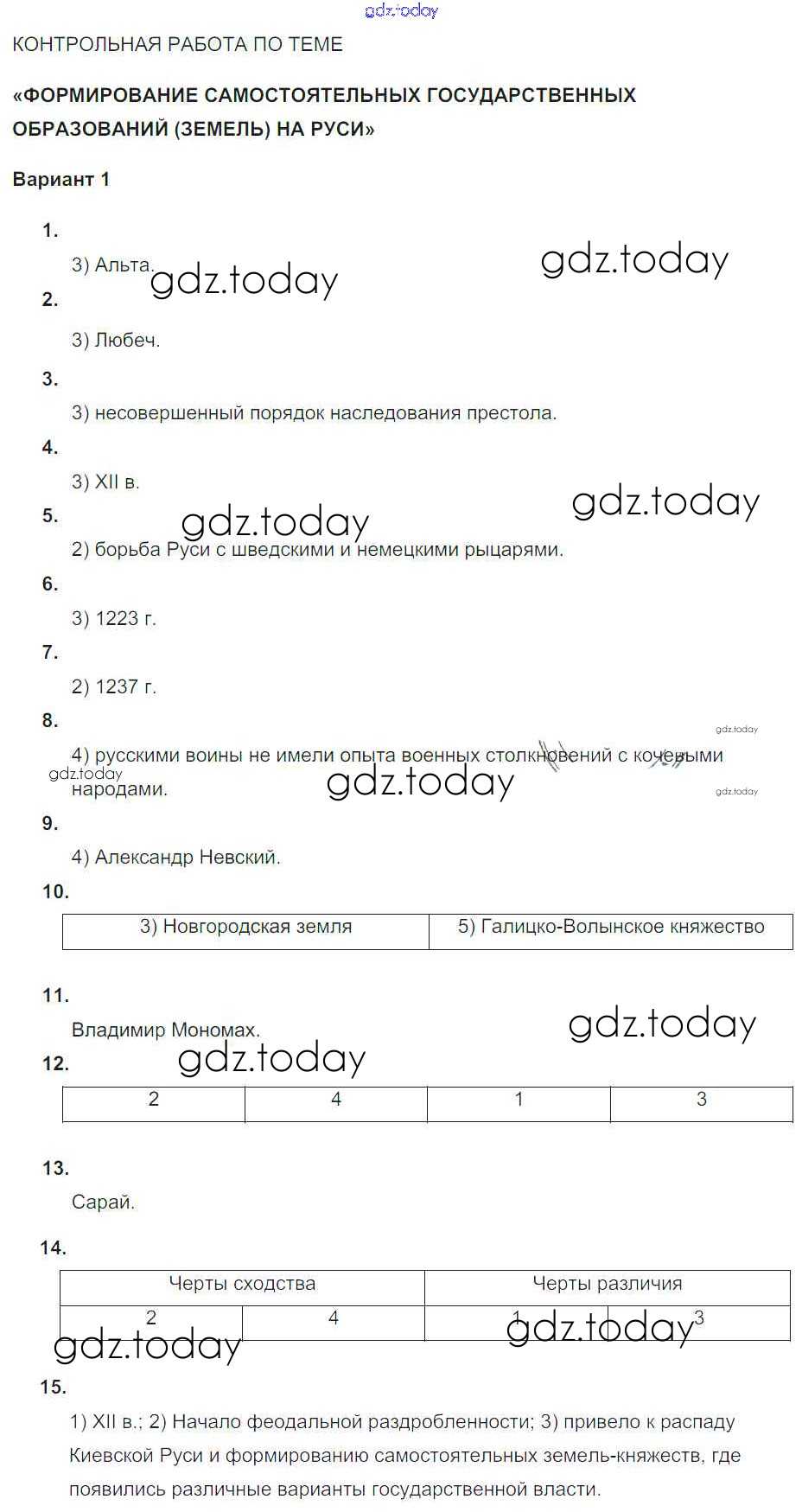 На страницах сайта gdz.today вы найдете учебный и вспомогательный материал, направленный на улучшения знаний школьной программы. ГДЗ - онлайн мир знаний КР. Формирование самостоятельных земель на Руси Формирование самостоятельных государственных образований на Руси (решение) Вариант-1 Тематическому контролю по Истории России для 6 класса Артасов, Гаврилина Национальное образование 2015