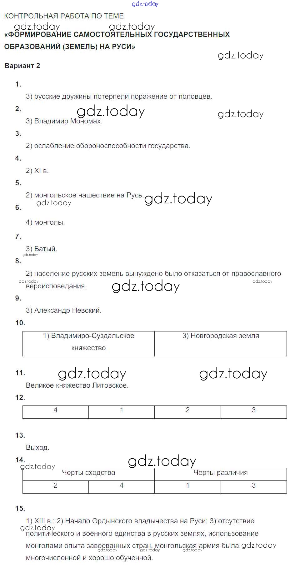 На страницах сайта gdz.today вы найдете учебный и вспомогательный материал, направленный на улучшения знаний школьной программы. ГДЗ - онлайн мир знаний КР. Формирование самостоятельных земель на Руси Формирование самостоятельных государственных образований на Руси (решение) Вариант-2 Тематическому контролю по Истории России для 6 класса Артасов, Гаврилина Национальное образование 2015