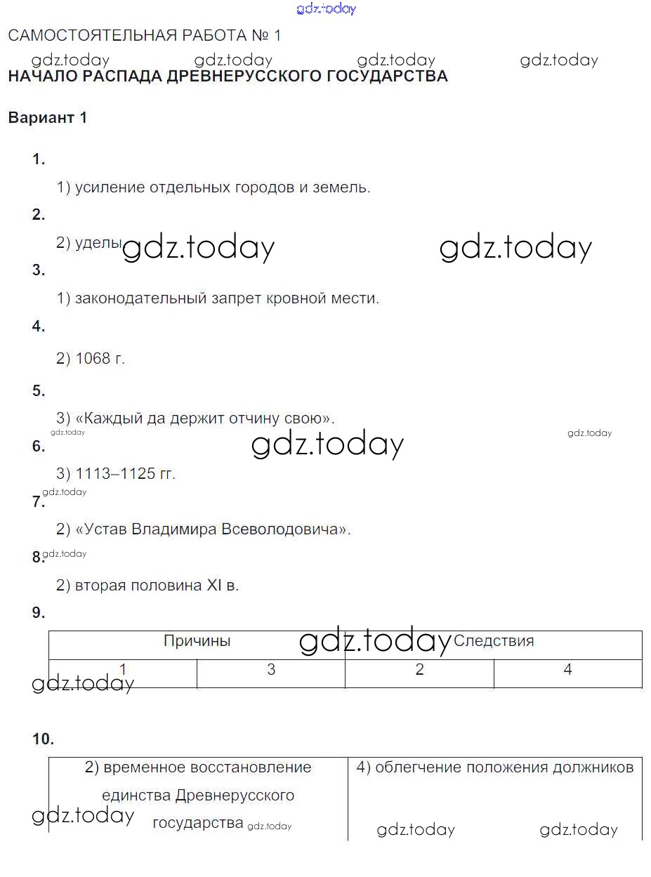 На страницах сайта gdz.today вы найдете учебный и вспомогательный материал, направленный на улучшения знаний школьной программы. ГДЗ - онлайн мир знаний СР-№1. Начало распада Древнерусского государства Формирование самостоятельных государственных образований на Руси (решение) Вариант-1 Тематическому контролю по Истории России для 6 класса Артасов, Гаврилина Национальное образование 2015