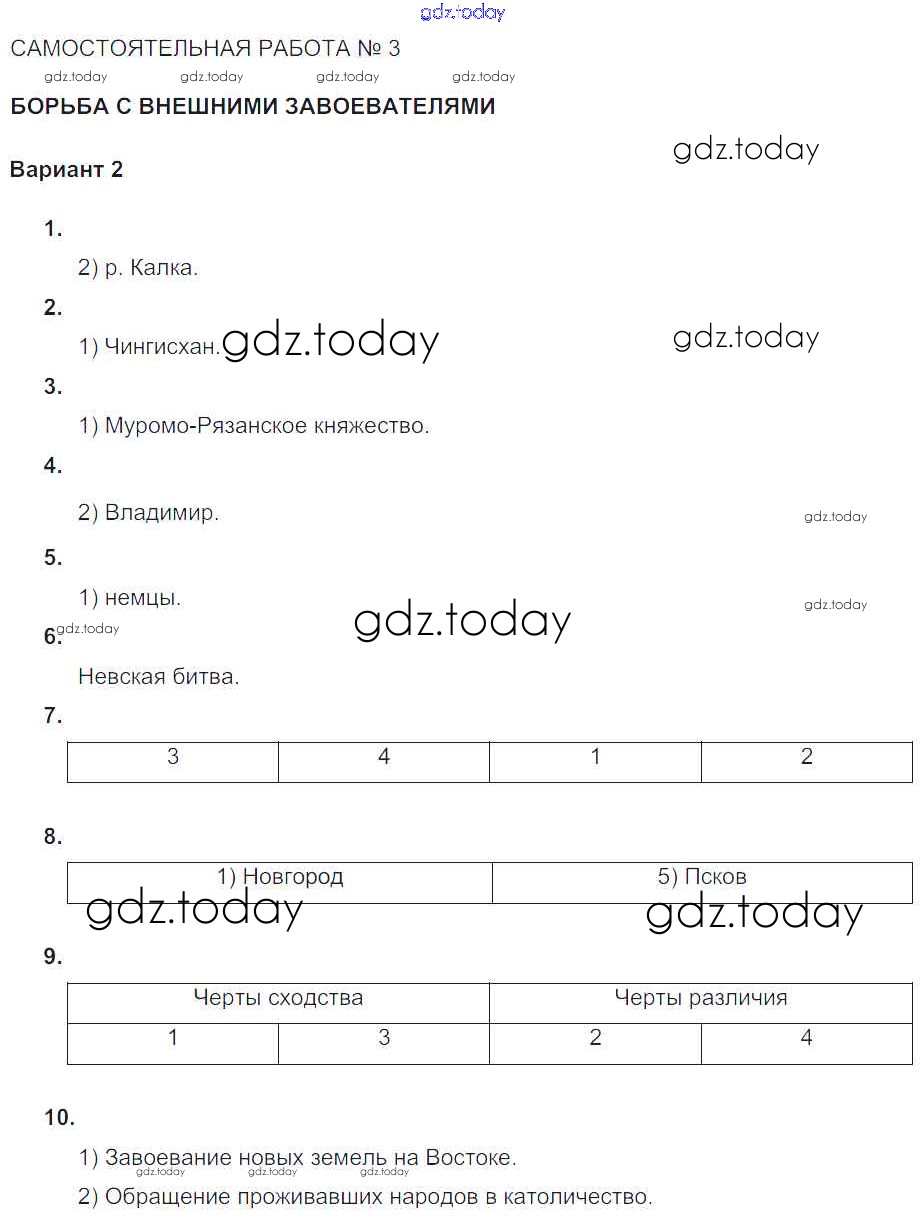 Ответы к СР-№3. Борьба с внешними завоевателями Формирование самостоятельных государственных образований на Руси (решение) Вариант-2 Тематическому контролю по Истории России для 6 класса Артасов, Гаврилина Национальное образование 2015