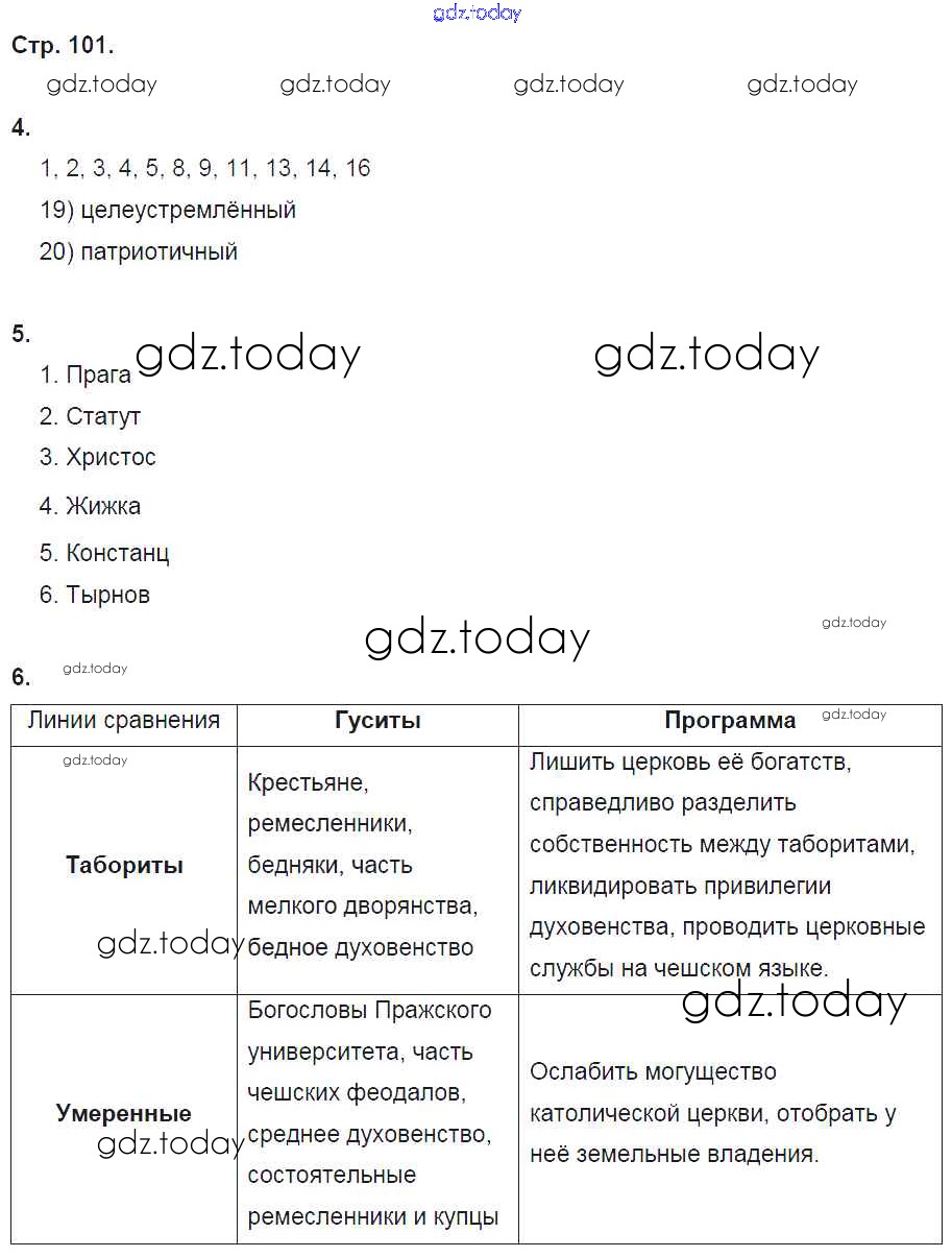 На страницах сайта gdz.today вы найдете учебный и вспомогательный материал, направленный на улучшения знаний школьной программы. ГДЗ - онлайн мир знаний Страницы (решение) 101 Рабочей тетради по Истории для 6 класса Баранов Вентана-граф Алгоритм успеха 2017