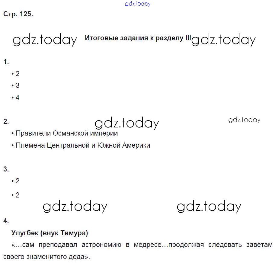 На страницах сайта gdz.today вы найдете учебный и вспомогательный материал, направленный на улучшения знаний школьной программы. ГДЗ - онлайн мир знаний Страницы (решение) 125 Рабочей тетради по Истории для 6 класса Баранов Вентана-граф Алгоритм успеха 2017
