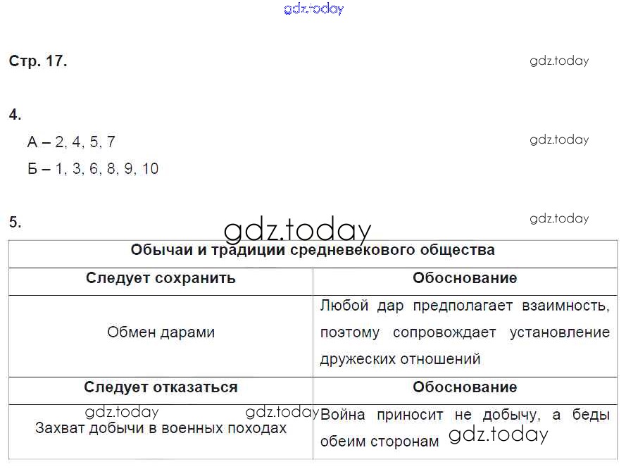 На страницах сайта gdz.today вы найдете учебный и вспомогательный материал, направленный на улучшения знаний школьной программы. ГДЗ - онлайн мир знаний Страницы (решение)  17 Рабочей тетради по Истории для 6 класса Баранов  Вентана-граф Алгоритм успеха 2017