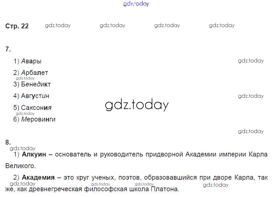 На страницах сайта gdz.today вы найдете учебный и вспомогательный материал, направленный на улучшения знаний школьной программы. ГДЗ - онлайн мир знаний Страницы (решение)  22 Рабочей тетради по Истории для 6 класса Баранов  Вентана-граф Алгоритм успеха 2017