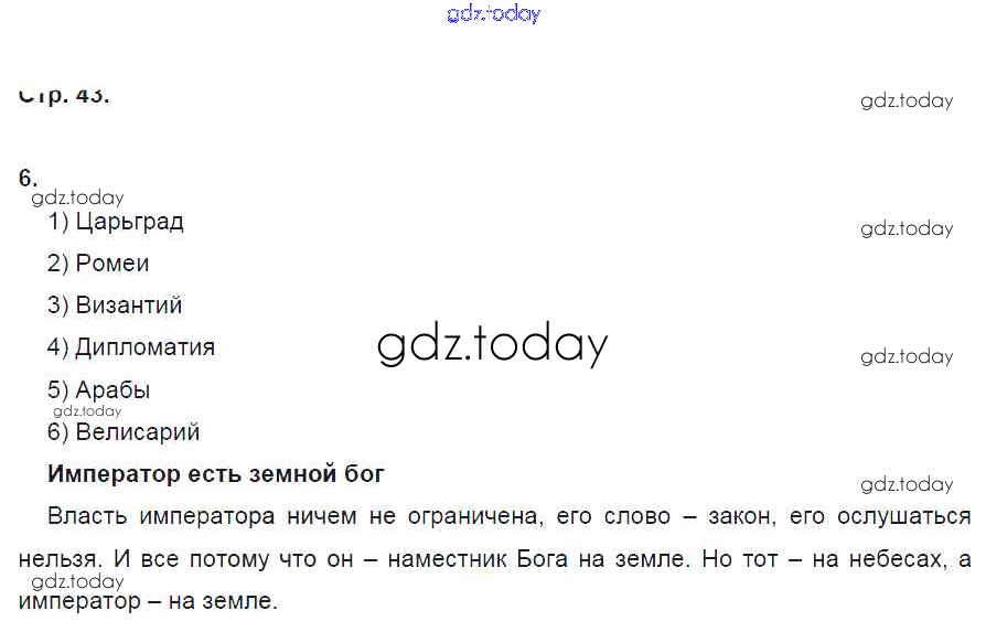 На страницах сайта gdz.today вы найдете учебный и вспомогательный материал, направленный на улучшения знаний школьной программы. ГДЗ - онлайн мир знаний Страницы (решение)  43 Рабочей тетради по Истории для 6 класса Баранов  Вентана-граф Алгоритм успеха 2017