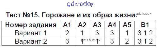Ответы к Решение к тестам Тест №15. Горожане и их образ жизни Контрольно-измерительным материалам (КИМ) по Истории для 6 класса Чернова Экзамен 2015