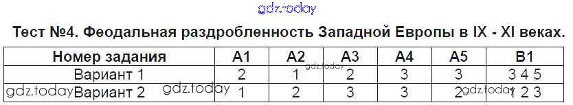 На страницах сайта gdz.today вы найдете учебный и вспомогательный материал, направленный на улучшения знаний школьной программы. ГДЗ - онлайн мир знаний Решение к тестам Тест №4. Феодальная раздробленность Западной Европы в IX - XI веках Контрольно-измерительным материалам (КИМ) по Истории для 6 класса Чернова Экзамен 2015