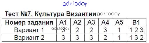 На страницах сайта gdz.today вы найдете учебный и вспомогательный материал, направленный на улучшения знаний школьной программы. ГДЗ - онлайн мир знаний Решение к тестам Тест №7. Культура Византии Контрольно-измерительным материалам (КИМ) по Истории для 6 класса Чернова Экзамен 2015