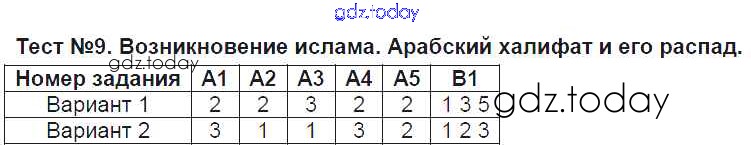 На страницах сайта gdz.today вы найдете учебный и вспомогательный материал, направленный на улучшения знаний школьной программы. ГДЗ - онлайн мир знаний Решение к тестам Тест №9. Возникновение ислама. Арабский халифат и его распад Контрольно-измерительным материалам (КИМ) по Истории для 6 класса Чернова Экзамен 2015