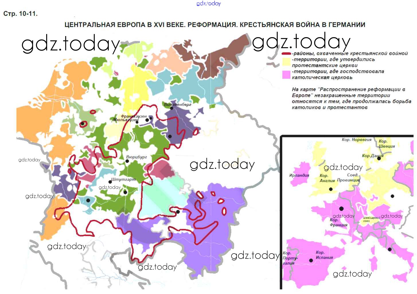 На страницах сайта gdz.today вы найдете учебный и вспомогательный материал, направленный на улучшения знаний школьной программы. ГДЗ - онлайн мир знаний Страницы (решение) Страница 11. Центральная Европа в XVI веке. Реформация. Крестьянская война в Германии Атласу по Истории для 6 класса Чугунова ФГУП Омская картографическая фабрика 2019