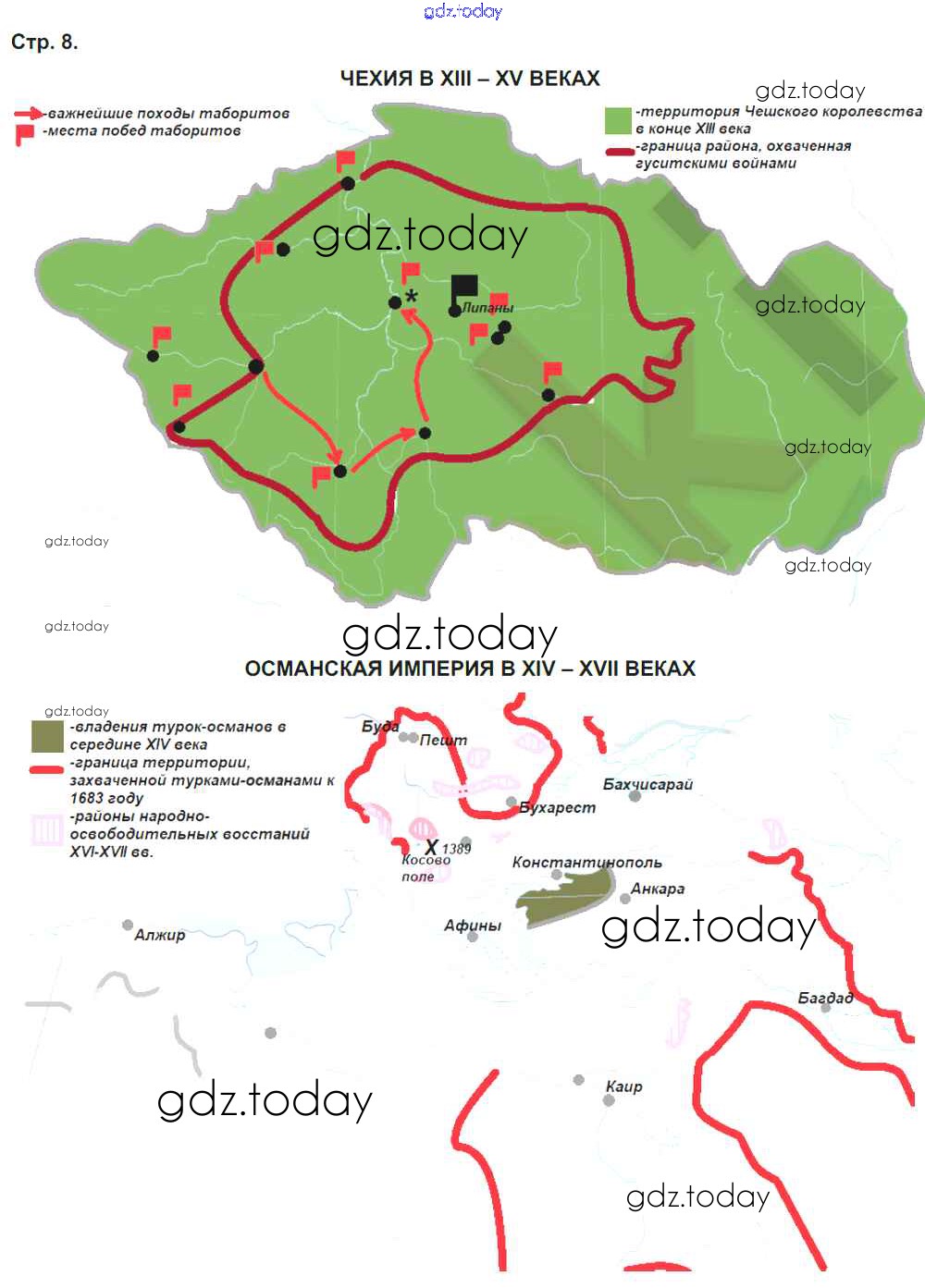 На страницах сайта gdz.today вы найдете учебный и вспомогательный материал, направленный на улучшения знаний школьной программы. ГДЗ - онлайн мир знаний Страницы (решение) Страница 8. Чехия в XIII-XV веках Атласу по Истории для 6 класса Чугунова ФГУП Омская картографическая фабрика 2019
