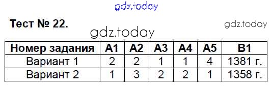 На страницах сайта gdz.today вы найдете учебный и вспомогательный материал, направленный на улучшения знаний школьной программы. ГДЗ - онлайн мир знаний Решение к тестам Тест №22 Контрольно-измерительным материалам (КИМ) по Истории для 6 класса Волкова ВАКО 2017