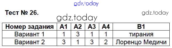 Ответы к Решение к тестам Тест №26 Контрольно-измерительным материалам (КИМ) по Истории для 6 класса Волкова ВАКО 2017