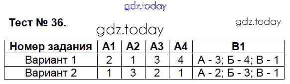 Ответы к Решение к тестам Тест №36 Контрольно-измерительным материалам (КИМ) по Истории для 6 класса Волкова ВАКО 2017