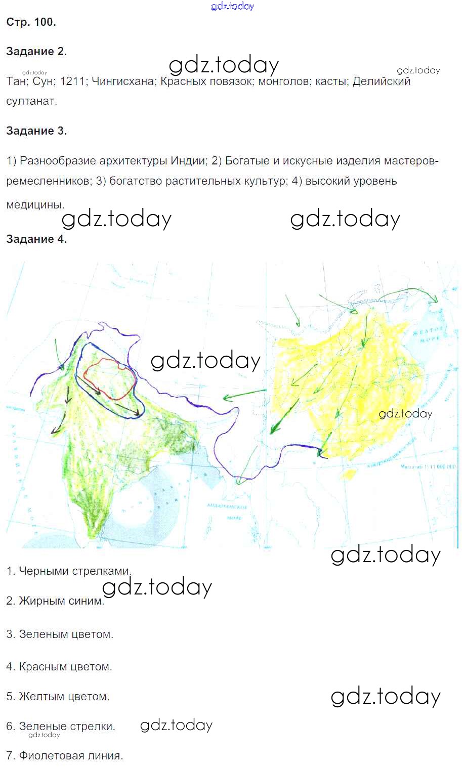 На страницах сайта gdz.today вы найдете учебный и вспомогательный материал, направленный на улучшения знаний школьной программы. ГДЗ - онлайн мир знаний Страницы (решение) 100 Рабочей тетради по Истории для 6 класса Чернова Экзамен УМК 2015