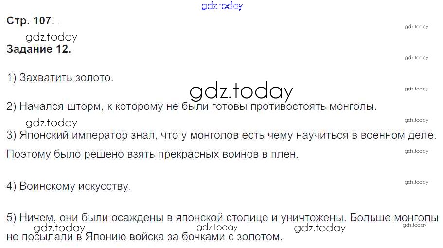 На страницах сайта gdz.today вы найдете учебный и вспомогательный материал, направленный на улучшения знаний школьной программы. ГДЗ - онлайн мир знаний Страницы (решение) 107 Рабочей тетради по Истории для 6 класса Чернова Экзамен УМК 2015