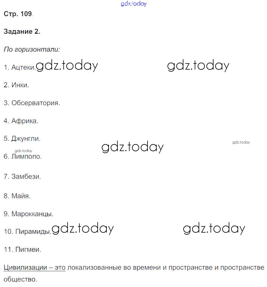 На страницах сайта gdz.today вы найдете учебный и вспомогательный материал, направленный на улучшения знаний школьной программы. ГДЗ - онлайн мир знаний Страницы (решение) 109 Рабочей тетради по Истории для 6 класса Чернова Экзамен УМК 2015