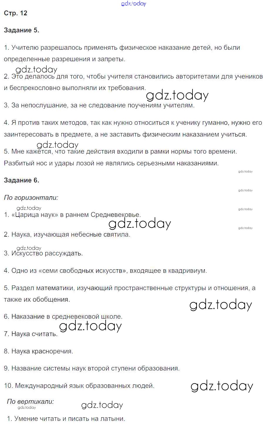На страницах сайта gdz.today вы найдете учебный и вспомогательный материал, направленный на улучшения знаний школьной программы. ГДЗ - онлайн мир знаний Страницы (решение) 12 Рабочей тетради по Истории для 6 класса Чернова Экзамен УМК 2015