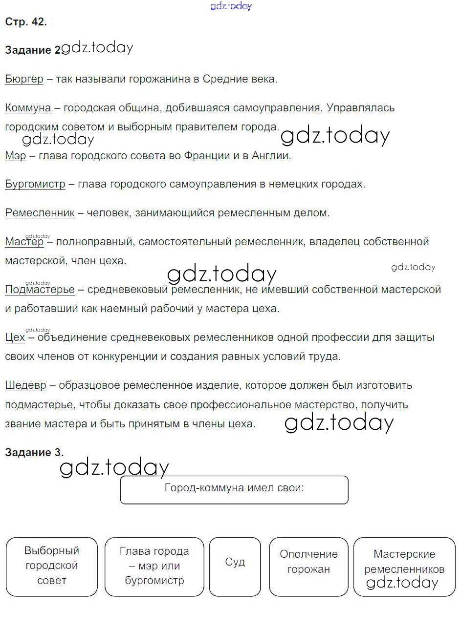 На страницах сайта gdz.today вы найдете учебный и вспомогательный материал, направленный на улучшения знаний школьной программы. ГДЗ - онлайн мир знаний Страницы (решение) 42 Рабочей тетради по Истории для 6 класса Чернова Экзамен УМК 2015