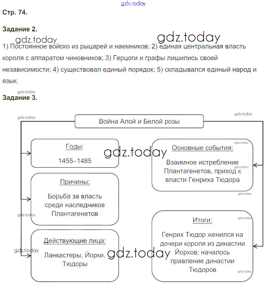 На страницах сайта gdz.today вы найдете учебный и вспомогательный материал, направленный на улучшения знаний школьной программы. ГДЗ - онлайн мир знаний Страницы (решение) 74 Рабочей тетради по Истории для 6 класса Чернова Экзамен УМК 2015