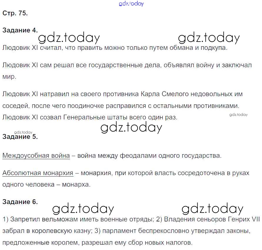На страницах сайта gdz.today вы найдете учебный и вспомогательный материал, направленный на улучшения знаний школьной программы. ГДЗ - онлайн мир знаний Страницы (решение) 75 Рабочей тетради по Истории для 6 класса Чернова Экзамен УМК 2015