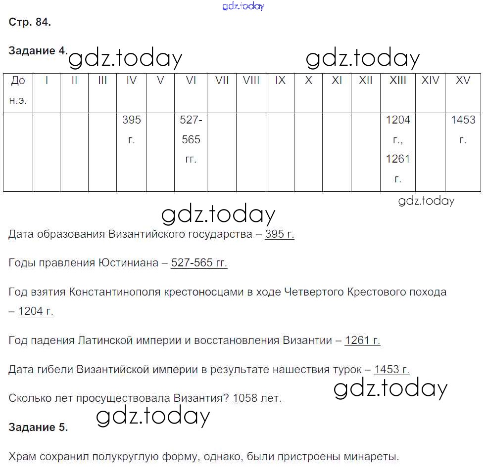 На страницах сайта gdz.today вы найдете учебный и вспомогательный материал, направленный на улучшения знаний школьной программы. ГДЗ - онлайн мир знаний Страницы (решение) 84 Рабочей тетради по Истории для 6 класса Чернова Экзамен УМК 2015