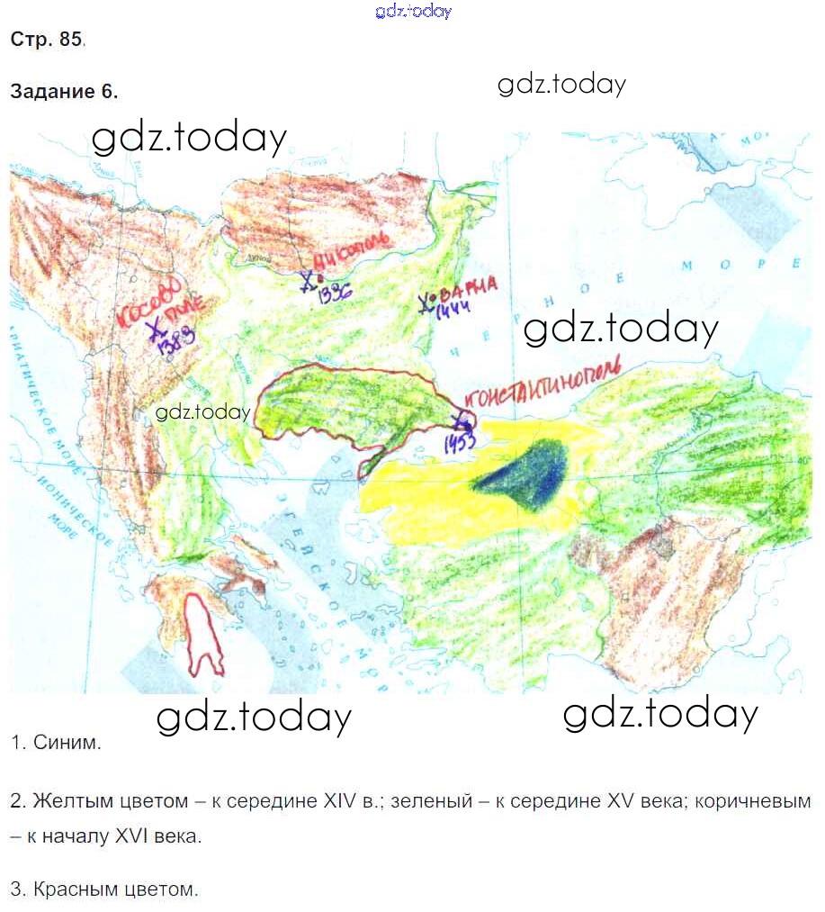 На страницах сайта gdz.today вы найдете учебный и вспомогательный материал, направленный на улучшения знаний школьной программы. ГДЗ - онлайн мир знаний Страницы (решение) 85 Рабочей тетради по Истории для 6 класса Чернова Экзамен УМК 2015
