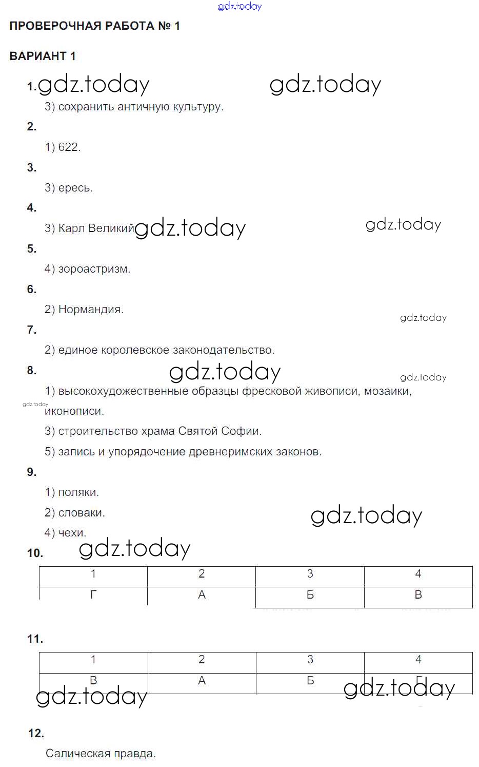Ответы к ПР-№1 Рождение Средневекового мира (решение) вариант-1 Тетради-тренажеру по Истории для 6 класса Уколова Просвещение Сферы 2017