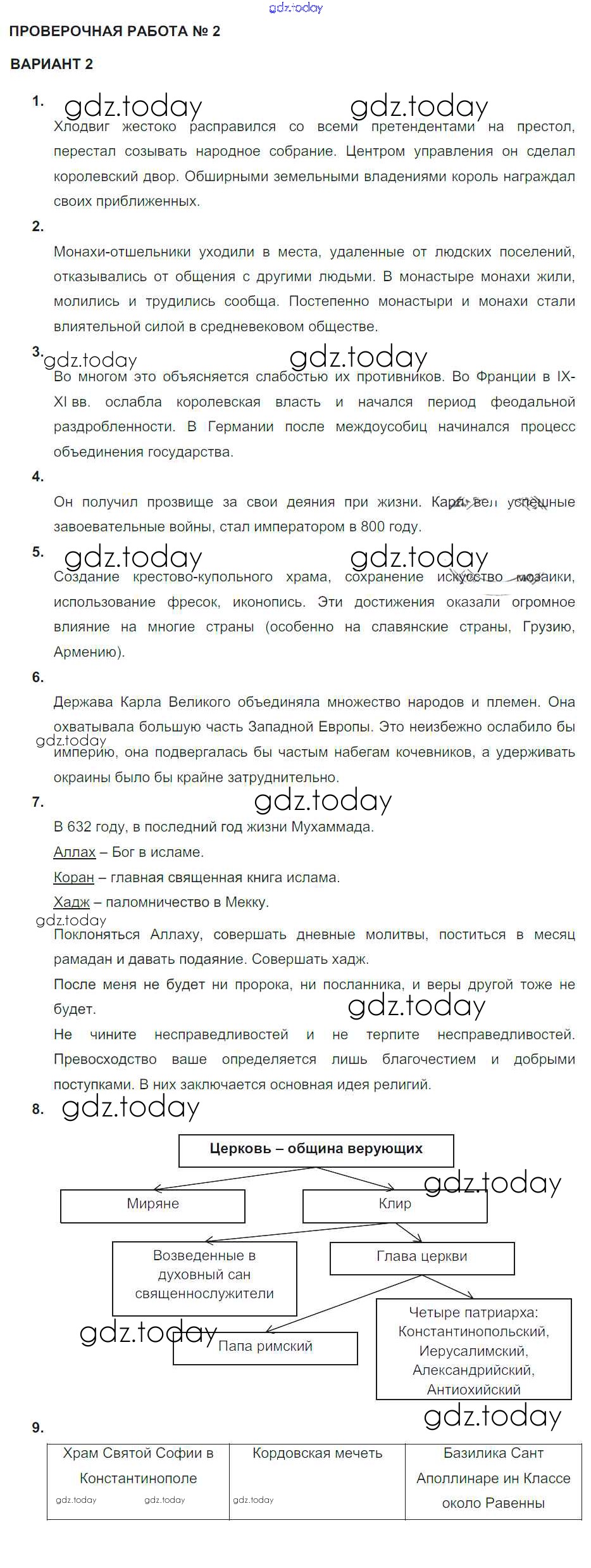 Ответы к ПР-№2 Рождение Средневекового мира (решение) вариант-2 Тетради-тренажеру по Истории для 6 класса Уколова Просвещение Сферы 2017