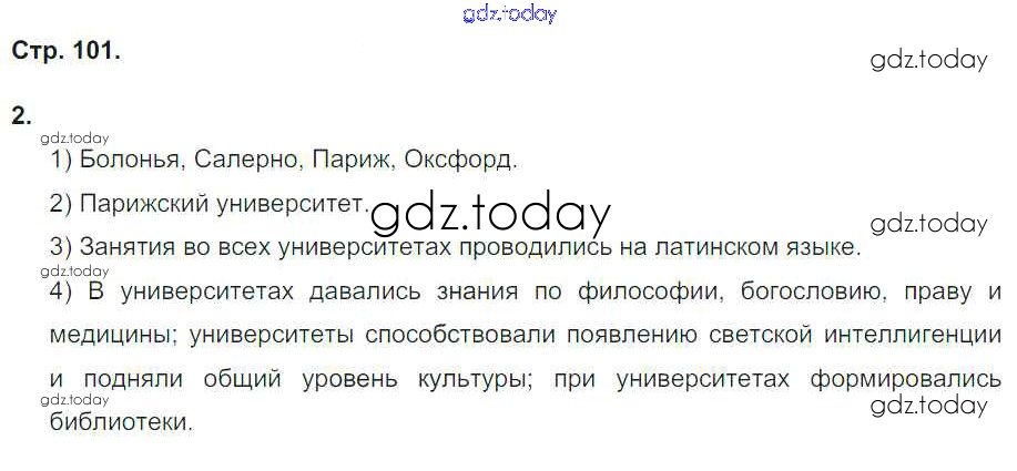 На страницах сайта gdz.today вы найдете учебный и вспомогательный материал, направленный на улучшения знаний школьной программы. ГДЗ - онлайн мир знаний Страницы (решение) 101 Рабочей тетради по Истории для 6 класса Чернова Экзамен УМК 2019