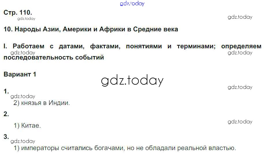 На страницах сайта gdz.today вы найдете учебный и вспомогательный материал, направленный на улучшения знаний школьной программы. ГДЗ - онлайн мир знаний Страницы (решение) 110 Рабочей тетради по Истории для 6 класса Чернова Экзамен УМК 2019